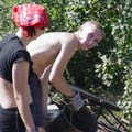 Work | PráceDneska mám službu já, Adriana a Maciek, můj velmi dobrý kamarád, s kterým jsem se seznámila před dvěma lety na Primule 2002. Začínáme brzy, vstávám v půl osmé a jdu vzbudit Macieka, abychom začali s přípravou snídaně. Již dlouho se totiž řídím heslem, že je snídaně nejdůležitějším jídlem dne, dnes obzvláště - jdeme na výlet, a tak se musíme hodně posilnit, abychom Milešovku, cíl naší cesty, pokořili. Milešovka je nejvyšší vrchol Českého středohoří v nadmořské výšce 837 m.n.m. a než k ní přijdeme, musíme urazit okolo deseti kilometrů.Na cestu vyrážíme krátce po desáté hodině, už na začátku musíme zdolat menší kopec, takže je nám již jasné, že nás nečeká žádná legrace. Krátce po zahájení našeho pochodu zjišťujeme, že si pro nás Markus připravil menší překvapení - cesta nebude po silnici, ale skrze roští a trní, přes louky a pole. Naštěstí jsme si všichni vzali poměrně dobré oblečení i boty, tudíž nikdo neutrpěl žádné vážnější zranění. Bez škrábanců se to ale neobešlo. Asi po třech hodinách jsme doklopýtali do první malé vesničky. Život jakoby se zde zastavil - je neděle a všichni jsou doma, avšak nám to vůbec nevadí, bavíme se hlasitým povídáním, vyvádíme různé hlouposti, tu a tam si utrhneme hrušku nebo jablko. Většinu naší cesty totiž lemuje řada ovocných stromů. S první vesnicí přichází i první hospoda, naše touha dát si studené pivíčko, je téměř k nevydržení, ale bohužel musíme ještě chvíli vydržet. Kdybychom si totiž sedli už nyní, nikdy bychom na Milešovku nedošli. Jdeme dál a procházíme postupně druhou a nakonec i třetí vesničkou. Třetí je naší vytouženou, kde se totiž zastavíme, abychom si trošku osvěžili zmrzlinou, pivem a maličko si odpočinuli. Adriana (CZ) & Maciek (PL) |